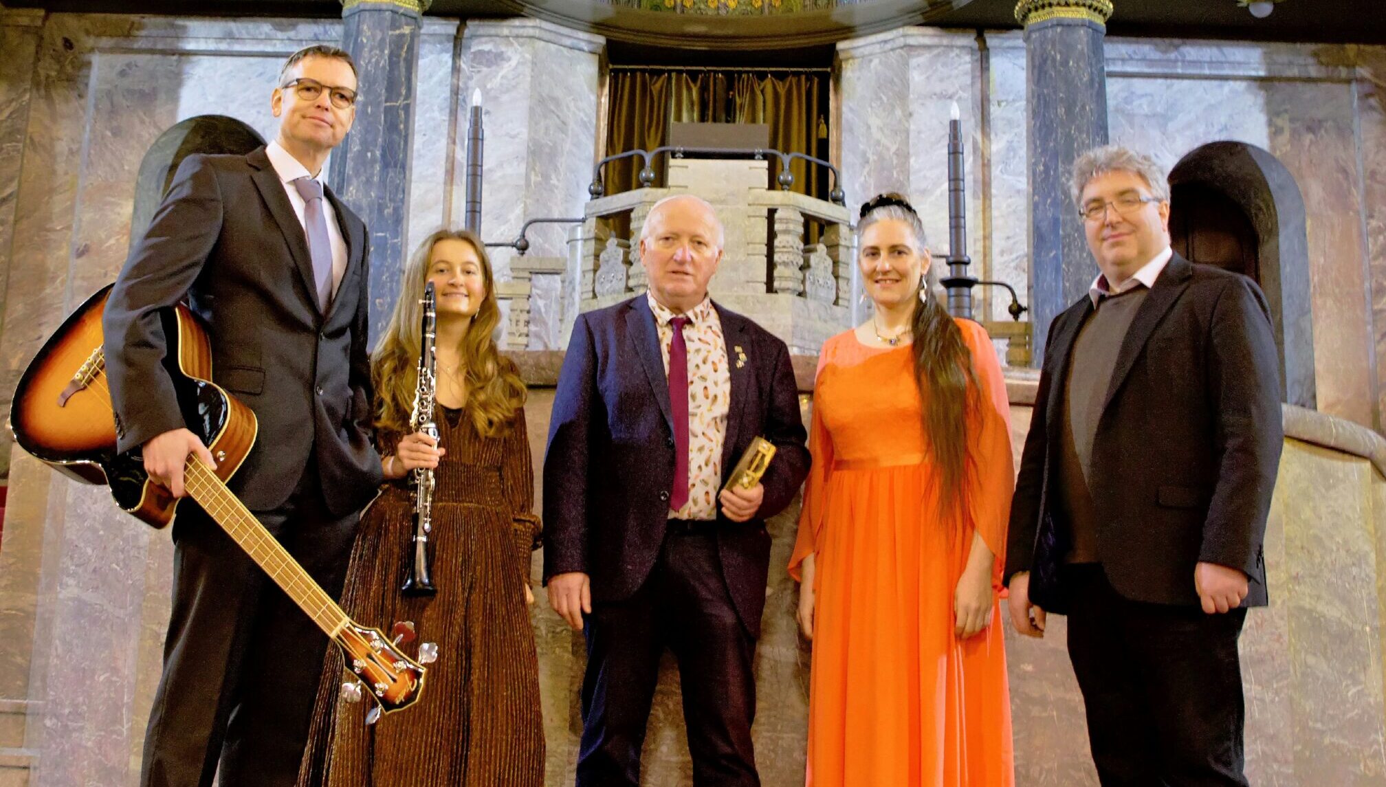| Sonntag, 16.11.2025 17.00 Uhr | ![]() ![]() | Das Augsburger Ensemble „Feygele“ gastiert in der ehemaligen Synagoge Binswangen. Die sechs Musikerinnen und Musiker bringen Repertoire aus ihrem alljährlichen Neujahrskonzert mit, das regelmäßig zum jüdischen Jahreswechsel im Herbst in Augsburg stattfindet. Ihr facettenreiches Programm besteht nicht nur aus instrumentalem Klezmer und jiddischen Liedern. Wegen der zeitlichen Nähe zum 9.11., dem Gedenktag der Reichspogromnacht liegt ein Schwerpunkt auf Liedern aus der synagogalen Liturgie und aus der Zeit des Holocausts. Das Ensemble spielt und singt in der Besetzung Christina S. Drexel – Gesang, Antonia Zott – Klarinette, Susanne Zippe – Violine, Peter Bader – Piano, Oliver Bosch – Bass und Josef Strzegowski – Percussion. Nähere Infos zum Ensemble: www.feygele-klezmer.jimdofree.com | Eintritt auf Spendenbasis | |